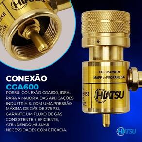 O maçarico portátil HIATSU JH-1ST oferece ignição rápida e segura com acionamento por gatilho, permitindo acender a chama instantaneamente com um único clique. Seu ignitor aprimorado melhora a taxa de ignição, garantindo uma performance confiável. Compatível com gás Propano, MAPP e MAP-PRO, o modelo conta com um botão ajustável que possibilita controlar o tamanho da chama conforme a necessidade. A válvula reguladora em latão sólido garante maior resistência e durabilidade.
