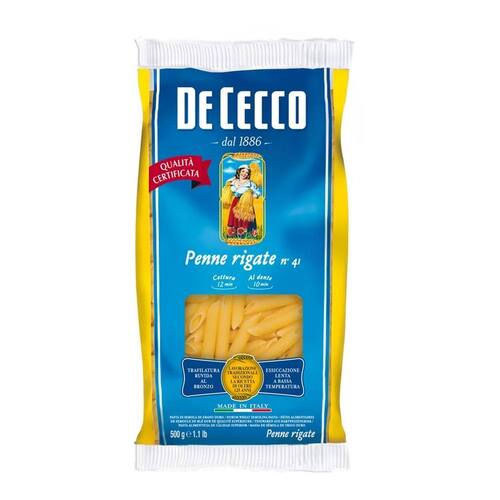 Macarrão Italiano DE CECCO Penne Rigate 500g O Macarrão Penne Rigate da De Cecco é elaborado somente com ingredientes selecionados e tradicional receita italiana. Deliciosa massa para suas melhores receitas. É ideal para ser servido com diferentes tipos de molho