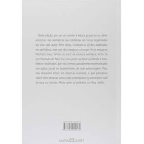 Nesta edição, por ser um convite à leitura, procurou-se colher amostras representativas nas coletâneas de contos organizadas em vida pelo autor. Além disso, incluíram-se contos publicados em periódicos, mas que não chegaram a compor livros, enquanto Machado viveu. Sendo um autor de estatura universal, muito do que Machado de Assis escreveu pode nos levar à reflexão, se não estabelecer incômodos, por nos vermos parcialmente representados nas ações, justas ou questionáveis, de suas personagens. Mas, o leitor não desanime: em diversas ocasiões, o que pensamos sobre determinadas coisas está contemplado no comentário sutil de seus narradores. Resta saber se podemos dar-lhes crédito.