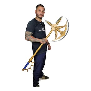 Machado Rhitta Em Aço Escanor Nanatsu No Taizai + Suporte Machado Rhitta Escanor Nanatsu no Taizai Sete Pecados Capitais Desvende o poder do sol com o Machado Rhitta de Escanor, uma réplica imponente inspirada em Sete Pecados Capitais. Perfeito para colecionadores e fãs de anime, esta peça impressionante adicionará um toque de majestade à sua coleção. Adentre o mundo épico de Nanatsu no Taizai com este incrível Machado Rhitta em Aço, uma réplica oficial que personifica a força do lendário Escanor. Com uma altura de 7 centímetros, largura de 46 centímetros e comprimento de 117 centímetros, esta réplica é uma representação impressionante da icônica do anime. Características Técnicas: Machado Rhitta, inspirado em Os Sete Pecados Capitais Material: Aço resistente Dimensões: Comprimento: 117 cm Largura: 46 cm Altura: 7 cm Peso: 4035g Detalhes meticulosos e acabamento de alta qualidade Informações de Uso: Este machado é ideal para exibição em espaços dedicados a colecionáveis, como estantes, vitrines ou como parte de cosplays e sessões de fotos. Devido ao seu tamanho e peso, não é recomendado para uso como ferramenta funcional. Machado Escanor, Nanatsu no Taizai, Réplica, Anime, Colecionáveis, Geek, Produto Oficial, Coleção de Anime, Escanor Rhitta, Machado Colecionável. Machado Rhitta Nanatsu no Taizai Machado de Escanor Produto Nanatsu no Taizai Colecionáveis de Anime Machado Escanor Sete Pecados Capitais Presente para Fãs de Nanatsu no Taizai Machado de Aço Escanor Escanor Machado Rhitta Machado de Escanor em Nanatsu no Taizai Marca: Não Informado