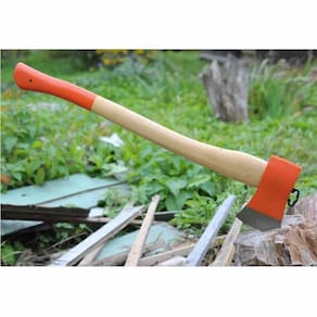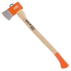Machado para utilização geral : campismo, trabalho de jardinagem e limpeza ocasional de ramos. Cabeça em aço de alta qualidade, conforme DIN 7287, classe B. Cabo curvo em madeira de freixo, conforme DIN 5132, classe B, con uma cunha de fibra de carbono dentada.