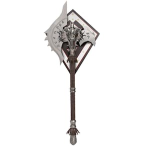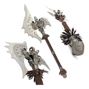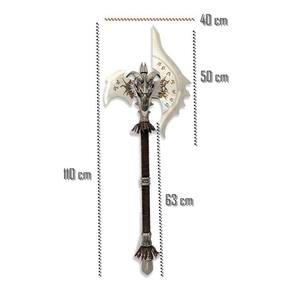 Machado World Of Warcraft Gigante Decoração Medieval Aço Inox Shadowmourne Cosplay Machado World Of Warcraft Gigante Aço Shadowmourne Lindo item para ter em sua coleção, presentear um amigo ou ente querido.Fotos reais tiradas por nossa equipe.Fabricação em aço, com acabamento do cabo em couro sintético e suporte de parede em madeira. Escrituras em relevo.DIMENSÕES:COMPRIMENTO TOTAL: 110 cmCABO: 63 cmLÂMINA: 50 cmEspessura: 3 mmLARGURA : 40 cmPeso da espada : 4,000 Kg Aproximado O que vem no Produto 1 Machado1 Suporte de parede Produto de decoração, não indicado para treino de impacto.