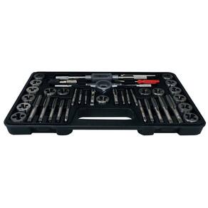 1 Jogo de machos e cossinetes composto por maleta plástica com 40 peças, sendo: 1 peça de cada cossinete (MA - milímetro rosca grossa) de 1" nas medidas: M3 x 0,50 mm, M4 x 0,70 mm, M5 x 0,80 mm, M6 x 1,00 mm, M7 x 1,00 mm, M8 x 1,25 mm, M10 x 1,50 mm e M12 x 1,75 mm. 1 peça de cada cossinete (BSW / UNC- polegada rosca grossa) de 1" nas medidas: 1/8" 40 fios, 5/32" 32 fios, 3/16" 24 fios, 1/4" 20 fios, 5/16" 18 fios, 3/8" 16 fios, 7/16" 14 fios e 1/2" (UNC 13 fios).1 cossinete (NPT - polegada rosca cônica) de 1" na medida 1/8" 27 fios.1 peça de cada macho (MA - milímetro rosca grossa) nas medidas: M3 x 0,50 mm, M4 x 0,70 mm, M5 x 0,80 mm, M6 x 1,00 mm, M7 x 1,00 mm, M8 x 1,25 mm, M10 x 1,50 mm e M12 x 1,75 mm.1 peça de cada macho (BSW / UNC)- polegada rosca grossa) nas medidas: 1/8" 40 fios, 5/32" 32 fios, 3/16" 24 fios, 1/4" 20 fios, 5/16" 18 fios, 3/8" 16 fios, 7/16" 14 fios e 1/2" (UNC 13 fios).1 macho (NPT - polegada rosca cônica) 1/8" 27 fios.1 chave manual para macho (vira-macho) com capacidade de 1/16" a 1/2" ou 3 mm a 12 mm.1 chave manual para cossinetes (porta-cossinete) de 1" ou 25,4 mm, 1 chave manual ajustável (vira-macho tipo T) com capacidade de 1/8" e 5/32" ou 3 mm e 4 mm.1 haste de aperto para chave manual ajustável (vira-macho tipo T), 1 chave de fenda 1/8" x 2", 1 pente de rosca (cálibre de rosca) com 16 laminas, sendo: 7 em milímetros (M3 X 0,50 mm, M4 X 0,70 mm, M5 X 0,80 mm, M6 X 1,00 mm, M8 X 1,25 mm, M10 X 1,50 mm , M12 X 1,75 mm) e 9 em polegadas, 1 de 1/8" rosca NPT 27 fios e 8 rosca BSW (1/8" 40 fios, 5/32" 32 fios, 3/16" 24 fios, 1/4" 20 fios, 5/16" 18 fios, 3/8" 16 fios, 7/16" 14 fios e 1/2" 12 fios).