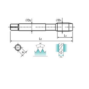 Macho Lâmina dor DIN371/DIN376 TiN Macho multi-uso, com perfil de rosca perfeito e vida util mais longa devido a geometria especial do macho. Produto patenteado pela YG-1. D1 - Bitola: M10 P - Passo: 1.5 L1 - Comprimento da Rosca: 22 L2 - Comprimento Total: 100 L3 - Comprimento do Pescoço: 39 D2 - Diâmetro da Haste: 10 K - Tamanho Quadrado: 8 Z - Número de Corte: 5 d1 - Diâmetro da Broca Pré Furo: 9.3 Marca: Não Informado