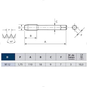 Indicado para furo passante ou furo cego em material de cavaco curto.