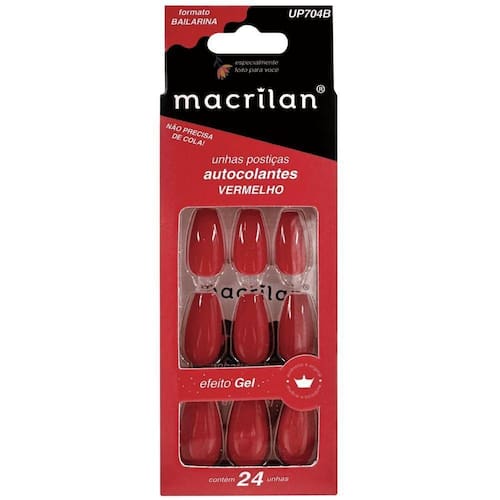 Macrilan Unhas Postiças Autocolantes Efeito Gel Vermelho Up704b (24 Unidades)