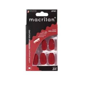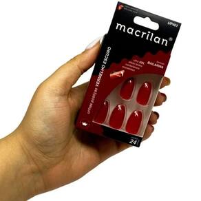Macrilan Unhas Postiças Bailarina Vermelho Escuro Up401 (24 Unidades) Unhas Postiças Macrilan especialmente desenvolvidas em uma versão colorida para uma aplicação rápida e segura. Indicadas para uso pessoal e profissional. Modo de usar: Prepare as unhas naturais Retire qualquer resíduo de esmalte das suas unhas com o removedor de sua preferência;Lixe o corpo da sua unha, retirando qualquer tipo de ondulação que dificulte a aderência. Prepare as unhas postiças Macrilan Selecione os tamanhos que mais se aproximam de suas unhas naturais. Lixe as laterais e a borda para um encaixe ideal;Repita o processo em todas as unhas;Aplique a cola de unha postiça Macrilan em suas unhas naturais;Fixe a unha postiça e pressione por 15 segundos. Composição: Plástico ABS.