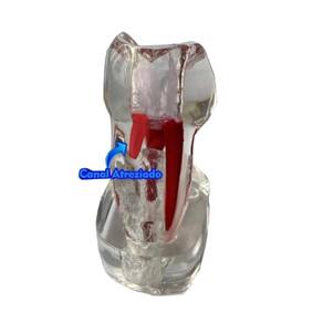 - Birradiculado com raízes mesial e distal - Raiz mesial com canal instrumentado pronto para obturação - Raiz distal com canais Mésio-Lingual e Mésio-Vestibular, sendo o último totalmente instrumentado - Canais instrumentados destacados em vermelho para fácil visualização - Inclui Macro Lima de 12 cm para simulação de instrumentação endodôntica - Base removível de acrílico transparente para suporte do dente - Forames apicais visíveis para explicação detalhada do tratamento - Importante para demonstrar aparelhos de localização do forame apical e motores para endodontia rotatória e reciprocante