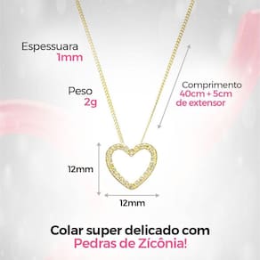 - 1 Pingente Aço Inox Banhado com Strass em Forma de Coração