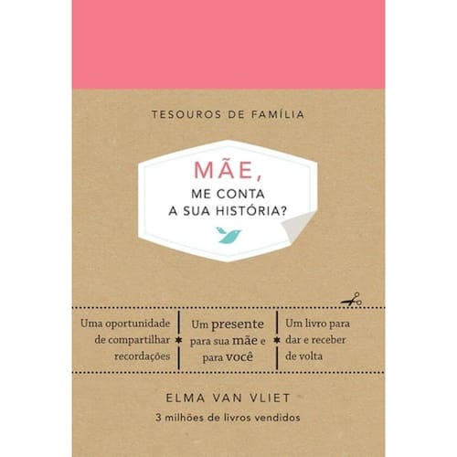 Um presente para sua mãe. Um tesouro para você. Elma van Vliet já vendeu mais de 3 milhões de livros no mundo. Normalmente na~o devolvemos os presentes que ganhamos, mas este livro e´ uma excec¸a~o a` regra. A intenc¸a~o e´ que sua ma~e o preencha e depois o devolva a voce^. Quando sua ma~e ficou doente, Elma van Vliet se deu conta de que havia muitas coisas que na~o sabia sobre ela ? quais eram seus sonhos, quem foi seu primeiro amor, o que gostava de fazer na juventude... Assim, ela decidiu criar um caderno de perguntas para que a ma~e pudesse registrar suas memo´rias e contar as histo´rias divertidas, comoventes e inspiradoras que viveu. Agora voce^ tambe´m vai poder conhecer melhor a sua ma~e e dividir com ela as recordac¸o~es e as escolhas que a tornaram a mulher especial que e´ hoje. Com espac¸o para escrever, colar fotografias e incluir o que mais desejar, este livro e´ um presente valioso. Afinal, os verdadeiros tesouros de fami´lia sa~o as lembranc¸as que compartilhamos com as pessoas que amamos.
