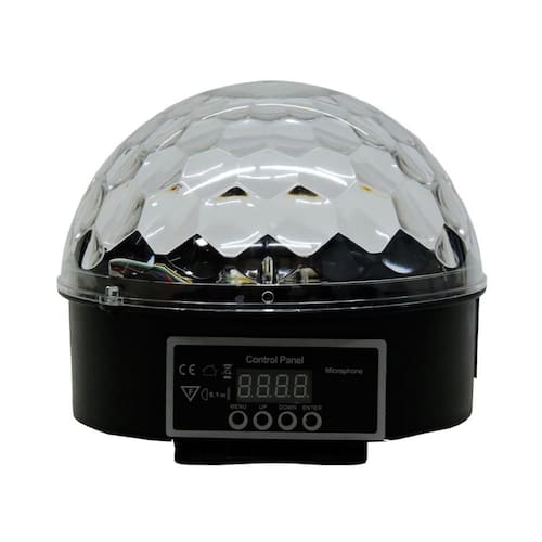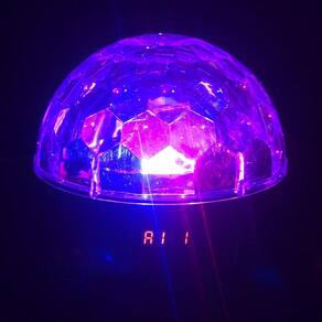 Composto por 6 LEDs de 3W cada, um motor para rotação dos feixes de luz e um acrílico com lentes óticas refratadas de alta qualidade, espalhando as cores à 180, proporcionando um longo alcance, feixes multiplicados e definidos (visto na fumaça).