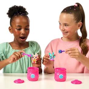 Ao levantar a tampa do caldeirão, desvende os ingredientes mágicos e prepare-se para o emocionante ritual de Fizz and Reveal. Com as palavras mágicas Magicus Mixus, testemunhe a revelação de um Mixling especial e de sua varinha única.