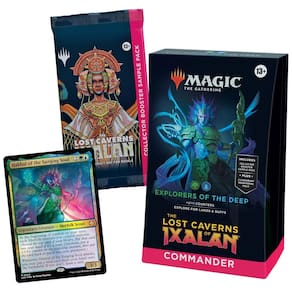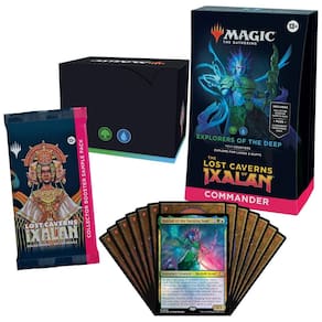 Prepare-se para explorar as profundezas das Cavernas Perdidas de Ixalan com o Deck de Comandante Exploradores das Profundezas! Este deck pronto para jogar irá levá-lo em uma emocionante jornada subterrânea, onde terras e tritões aguardam para fortalecer seu exército e mudar o rumo da batalha.