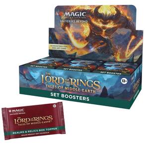 Desvende mistérios enquanto você abre os boosters, com uma chance de encontrar terrenos do mapa da Terra-média com arte completa em 50% dos pacotes. Além disso, 20% dos Set Boosters incluem um Terreno Foil Tradicional, enquanto 10% apresentam um Art Card Foil-Carimbado, adicionando um toque de brilho às suas descobertas.