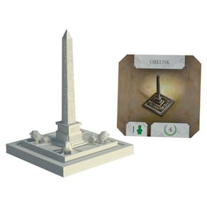 Este monumento custa 5 Moedas. deve ser preenchido por 4 meeples de população para marcar 4, 8 ou 12 pontos de vitória no jogo, dependendo de cada símbolo sob o Obelisco no final do jogo.