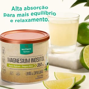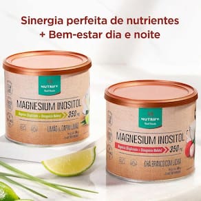 Conheça os benefícios do magnesium inositol Alta absorção para mais equilíbrio e relaxamento. Magnesium inositol é uma fórmula avançada desenvolvida para promover o bem-estar integral, auxiliar a função neuromuscular, promovendo o bem-estar mental. Magnésio Fundamental para a função muscular e a saúde óssea. O bisglicinato de magnésio é altamente biodisponível e pode ajudar a reduzir cãibras e melhorar o relaxamento muscular. Inositol e vitamina b6: contribuem para a função cognitiva e o equilíbrio emocional. O inositol está associado à melhoria dos sintomas de transtornos de ansiedade e depressão, enquanto a vitamina b6 é crucial para a produção de neurotransmissores. Fontes altamente absorvíveis: bisglicinato de magnésio e dimagnésio malato: conhecido por sua alta biodisponibilidade e menor risco de efeitos colaterais gastrointestinais em comparação com outros tipos de magnésio. Bisglicinato de magnésio + dimagnésio malato: magnésio quelado para melhor absorção e menor impacto no sistema gastrointestinal. Glicina: aminoácido que contribui para a regulação do metabolismo e saúde geral. Inositol: forma parte do complexo b e apoia a função cerebral e o equilíbrio emocional. Vitamina b6: fundamental para a produção de neurotransmissores e metabolismo de proteínas. Magnesium inositol nutrify vem em dois sabores exclusivos que não apenas agradam ao paladar, mas também proporcionam uma experiência sensorial relaxante: chá branco com lichia e capim limão com limão