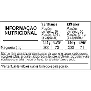Alta absorção e biodisponibilidade - 300mg de magnésio elementar por dose 2 cápsulas/dia .
