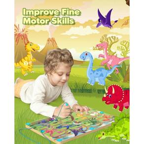 Labirinto magnético de cores e números, dinossauros, brinquedos Montessori para meninos e meninas de 3 anos ou mais, habilidades motoras finas, quebra-cabeças de madeira, jogos de tabuleiro, brinquedos educativos pré-escolares para atividades para crianças pequenas
