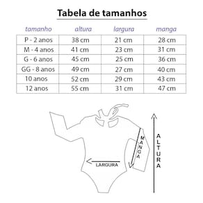 Tamanho 4 Altura 41cm Largura 23cm Manga 31cm Recomendado 2 a 4 anos