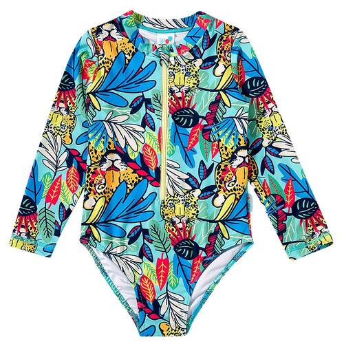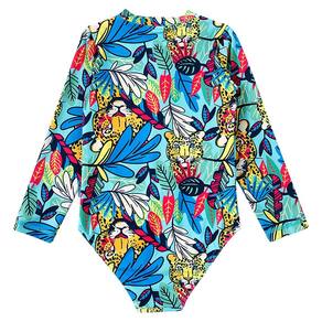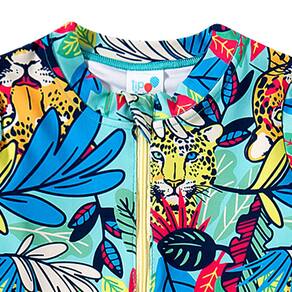 O Body Praia Infantil Manga Longa Onça Tropical da Tip Top é ideal para as pimpolhas aproveitarem a praia com todo estilo e proteção. Possui proteção solar permanente (FPS 50+) tem design moderno e confecção em tecidos leves. Com zíper frontal com proteção, é super prático de vestir.