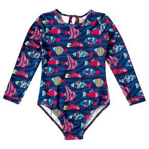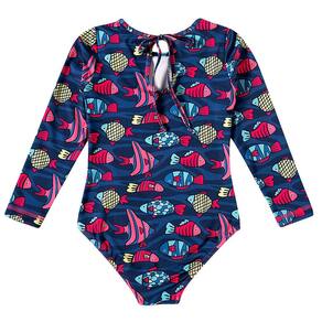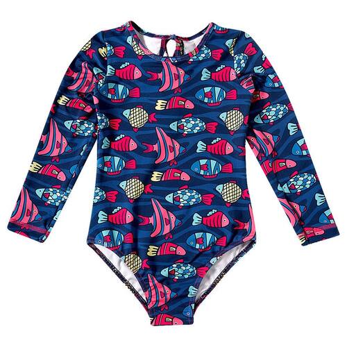 O Body Praia Infantil Manga Longa Peixes Marinho Tip Top é ideal para as pimpolhas aproveitarem a praia com todo estilo e segurança. Possui proteção solar FPS 50+ permanente, tem design moderno e confecção em tecidos leves. O tamanho 6-12M (G) possui abertura entrepernas, para facilitar a troca de fraldas.