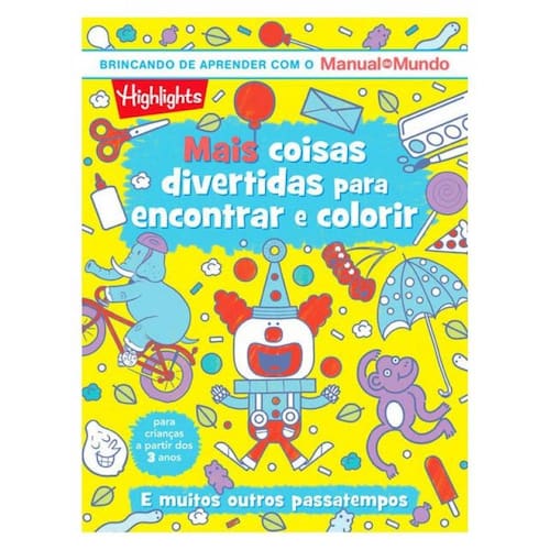 Para crianças a partir dos 3 anos. O Manual do Mundo convida as crianças para novas aventuras! É hora de dar asas à imaginação e colorir desenhos bem malucos, achar objetos escondidos, ligar os pares e se arriscar nos labirintos! Enquanto encontra e pinta macaquinhos, bicicletas, carros, flores, doces e muito mais, a garotada descobre um montão de novas palavras. Aqui a diversão é garantida, porque brincadeira e aprendizado andam juntos! Ean: 9786555648171