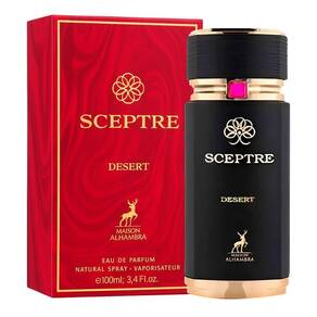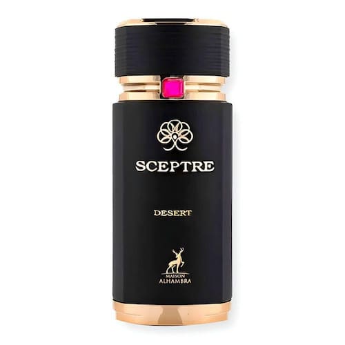 Maison Alhambra Sceptre Desert Eau de Parfum é uma fragrância frutada gourmand ousada e magnética, perfeita para indivíduos carismáticos que desejam uma presença misteriosa e rica como o calor do deserto. Lançada em 2022 pela casa árabe Maison Alhambra, esta essência unissex captura a grandiosidade das areias douradas ao entardecer, com uma abertura suculenta de morango e framboesa temperada por canela quente, evoluindo para um coração luxuriante de amora e caramelo suavizado por cedro refinado, e ancorada em uma base sensual de couro, baunilha cremosa, patchouli terroso e fava tonka fumada. Ideal para quem busca um perfume que une indulgência selvagem e sofisticação sutil, Sceptre Desert proporciona uma experiência olfativa viciante e duradoura, transformando o dia a dia em uma jornada de mistério e opulência, criando uma conexão emocional de ousadia e irresistível.