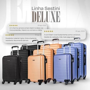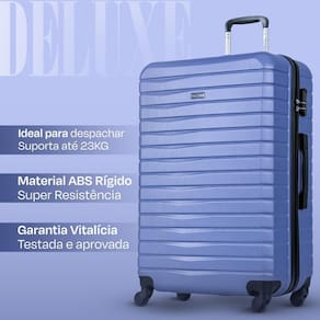 Equipada com um cadeado fixo com segredo integrado, esta mala proporciona tranquilidade adicional durante seus deslocamentos. A abertura central facilita o acesso rápido ao interior da mala, complementada pelo carrinho embutido, que proporciona conforto e praticidade ao transportar sua bagagem.