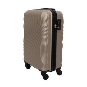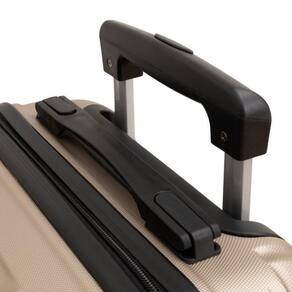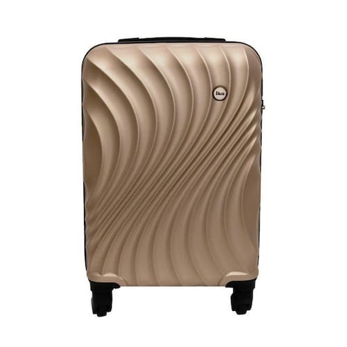 Malas para viagem fabricadas com superficie exterior de folhas plasticas sendo: 100%em abs rigido injetado , acompanhada de carrinho embutido fabricado dferro rodas simples que giram 360 graus, cadeado fixo e contendo: forro interno confeccionado em 100% de fibras sinteticas de nylon poliamida - um compartimento interno para roupas usadas e tiras internas para prender roupas, duas alcas de mao retratil de material rigido pp polipropileno rigido -tamanho: 24 - champagne -marca: ika -modelo: avalon - sendo: champagne