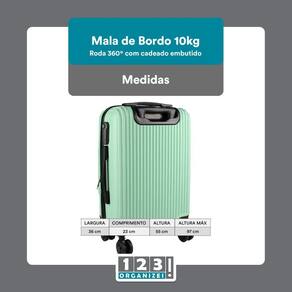 Mala Bordo Verde 10kg Viagem Avião Rod360 C/Cadeado Embutido Mala de bordo Se você está procurando a mala de bordo perfeita para sua viagem Seu tempo de procura acabou O modelo 123 Organizei é perfeito para que sua viagem seja segura, tranquila e que sua bagagem fique pertinho de você em todo tempo. Contém: 1 - Mala de Bordo Tamanho P - Confeccionada em material ABS - Cadeado com senha numérica - Rodinhas duplas com giro 360 - Alça de mão retrátil com regulagem de altura - Pontos de apoio lateral - Elástico interno para segurar seus pertences - Estrutura arredondada - Está mala se enquadra no padrão ANAC de mala de bordo Dimensões Mala - Altura 55cm - Largura 36cm - Comprimento 23cm - Altura máxima 97cm x000d x000d Resistente a Água x000d Tem 90 DIAS de por conta do fabricante Não cobre danos por mal uso. - Dá para trocar a senha do cadeado Sim Basta seguir os passos abaixo: 1 - A senha de fábrica do cadeado é 000 2 - Mantenha essa senha, e puxe o botão para cima. 3 - Com o botão pressionado para cima, selecione a senha que deseja arrastando os números para o lado. 4 - Após escolher a senha basta soltar o botão, assim os passos estarão concluídos e você terá a sua senha personalizada. Marca: Não Informado