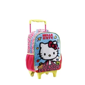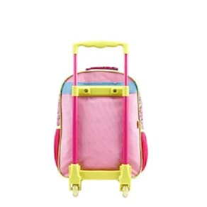 Em tamanho 14, produzida em poliéster resistente e estampado. Painel frontal PVC vincado com espuma com detalhes com glitter - Compartimento principal amplo , 2 bolsos laterais mesh, zíper com puxadores personalizados, alça de mão em nylon com poliester e piping forrado. Carrinho em metal com travas. DIMENSÕES: - Largura: 27cm - Altura: 35cm - Comprimento: 14cm PESO: 800gr