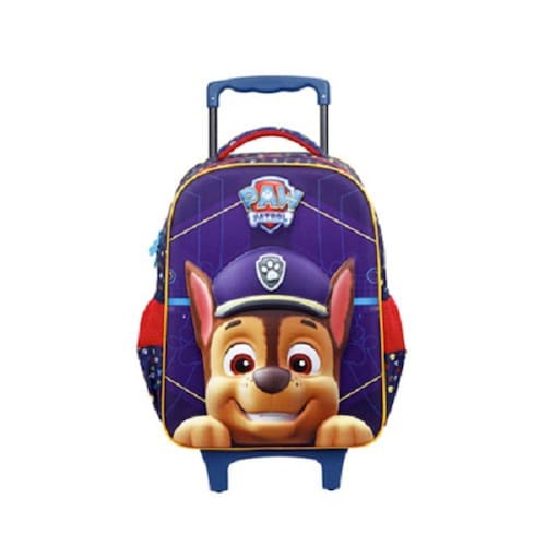 Em tamanho 16", é produzida em poliéster resistente e estampado. Painel frontal EVA 3D Nylon (relevo) - Compartimento principal amplo, 2 bolsos laterais de mesh com poliester e elástico. Zíper com puxadores personalizados. Alça de mao de poliester com mesh. Carrinho em metal com travas.