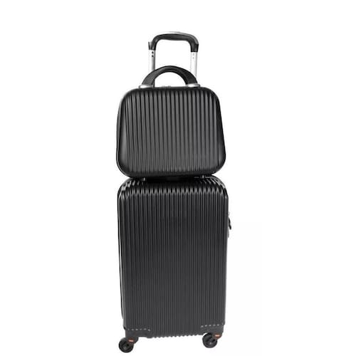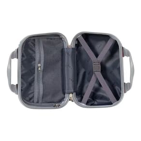 01 mala de bordo pequena 20 polegadas + 1 Frasqueira Material: ABS 04 Rodas duplas 360 Carrinho embutido com regulagem de altura Alça superior Bolso interno de separação com zíper Fechadura Cinta elástica cruzada com trava
