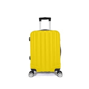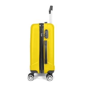 Características Parte Externa: Pode ser utilizada como bagagem de mão em aviões; Cor: Amarela; Estrutura rígida em ABS; Cadeado fixo com senha configurável; Alça de alumínio retrátil com regulagem de altura; Alça superior e lateral; 4 Rodas com giro 360.