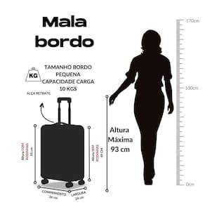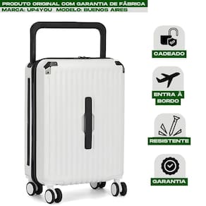 Material: ABS de alta durabilidade Alça: Confortável alça de mão frontal e alça retrátil com botão de liberação rápida Segurança: Cadeado embutido com combinação numérica para máxima segurança Mobilidade: Rodas multidirecionais com giro 360 para uma movimentação suave Organização: Bolso interno com zíper e cintas elásticas para manter tudo no lugar Capacidade: Amplos 38 Litros Marca: UP4YOU Modelo: Buenos Aires