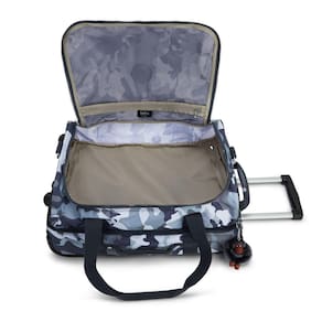 Características Técnicas: - Modelo: Mala de Bordo Kipling Teagan US Camuflada Cinza - Código: WL4841 - Cor 0HX Cool Camo Grey - Material: 100% Poliéster Reciclado - Alças: Retrátil, superiores, laterais e transversal - Rodas: Duas rodas rolantes - Volume: 39L - Peso: 2,60Kg - Dimensões: A.54 cm x C.35cm x P.27,5cm - Acompanha chaveiro macaco Pierce