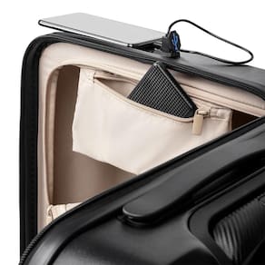 - Abertura frontal com ziper para acesso ao interior da mala;