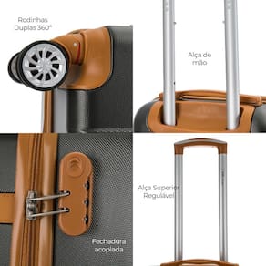 Além dessa característica, a mala de viagem P é produzida em ABS, ou seja, é mais resistente a impactos, durável e impermeável.