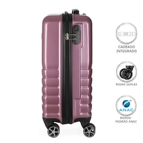 - Malas em ABS, material de alta qualidade. - Cadeado acoplado. - Rodas Duplas com Giro 360º - Mala com zíper expansivo. - Elástico interno e divisória interna com zíper.