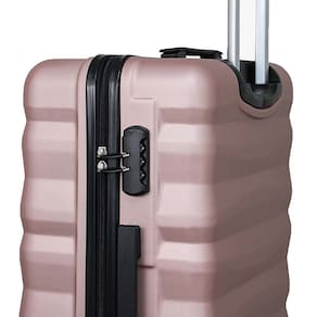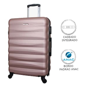 - Malas em ABS, material de alta qualidade. - Cadeado acoplado. - Rodas com giro 360º - Elástico interno e divisória interna com zíper.