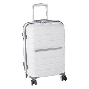 Cor: Branco Material: Polipropileno Cadeado TSA acoplado 4 rodas duplas com giro 360 Alça carrinho com botão liberador Sistema de carrinho com ajuste de posição Alça superior e lateral Cintas elásticas para maior organização Painel divisor com zíper 2 Bolsos internos Identificador de bagagem Capacidade: 35 Litros