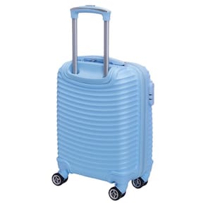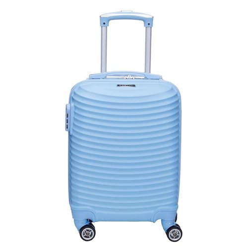 Cor: Azul Claro Material: ABS 4 rodas duplas com giro 360 Alça de mão superior Alça carrinho Organizador interno Cintas elásticas organizacionais Cadeado fixo Capacidade: 27 Litros