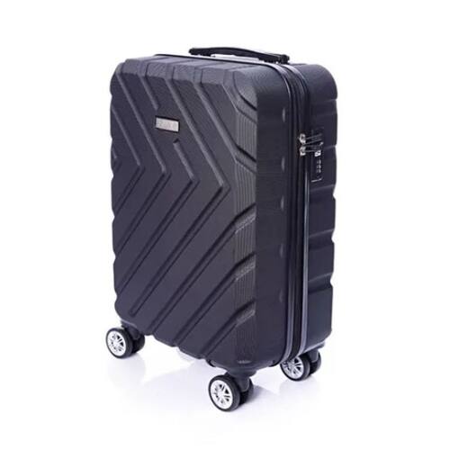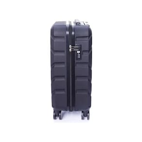 Confeccionada em ABS, possui cadeado com combinação, carrinho com ajuste de posição, alças superior e lateral ergonômicas e alça de alumínio retrátil.