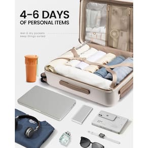 -?DESIGN DE INTERIORES ORGANIZADO?O compartimento principal desta bagagem de mão giratória inclui um bolso de malha e um bolso úmido para separar roupas, sapatos ou produtos de higiene pessoal limpos. Com seu layout interno inteligente, esta mala de 20 polegadas com rodas ajuda você a arrumar as malas com mais eficiência e acessar tudo com facilidade.