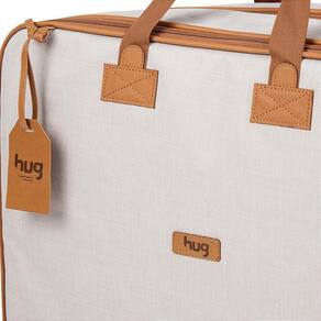 - Alças de mão fixas e alça regulável e removível para maior conforto dos pais