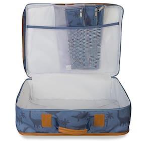 A Mala Vintage é a companheira ideal para a ida à maternidade e futuras viagens com o seu filhote! Com um lindo tom de verde, a estampa safari se chama atenção de longe. Com um amplo compartimento interno, essa mala oferece espaço para acomodar todos os itens essenciais do bebê, como roupas, fraldas e mantas. Os elásticos internos garantem a organização e segurança dos pertences durante viagens ou passeios. A mala acompanha três saquinhos organizadores com a mesma estampa que ajudam no planejamento da ida à maternidade. O bolso frontal conta com uma tela organizadora e é ideal para guardar os documentos do bebê. Com a Mala Vintage, mamães e papais terão a união perfeita entre estilo vintage e funcionalidade moderna para uma experiência de maternidade mais organizada e encantadora!