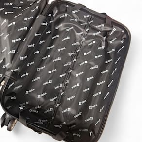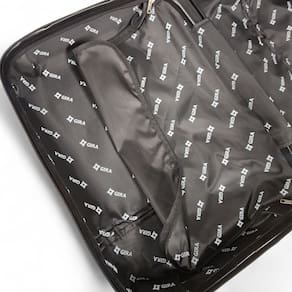 O interior inteligente conta com elásticos para prender roupas e bolso na tampa, enquanto o forro personalizado adiciona um toque de sofisticação. Ela facilita o transporte, tornando suas caminhadas pelos aeroportos mais leves e ágeis.