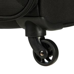 Cor: Preto Material: Poliéster Amplo compartimento interno Cintas elásticas para maior fixação de roupas Sistema de trava com combinação numérica Alça de mão superior 4 rodas com giro 360 Capacidade: 70 Litros