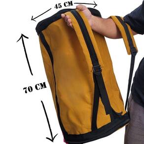 O Saco de Carga T-11 Redondo vem com alças de costa e de mão, expande 15 cm de cada lado, contém um fecho eclair com cursor jumbo o maior do mercado no contorno para regulagem de tamanho. Compartimento principal protegido com fecho de contato e fecho eclair, ja o bolso externo é fechado com apenas 02 cursores jumbo oque permite que possa ser trancado por cadeado não incluso e que em caso de defeito ainda tenha outro puxador. Tecido: Lona Encerada de algodão 100% reciclável,