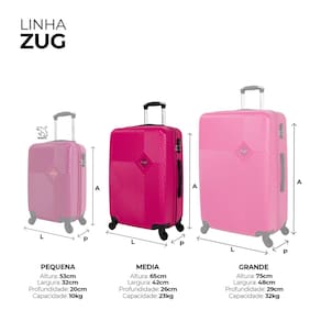 Mala de viagem bordo 10kg / Mala média 23kg / Mala grande 32kg Zug Swiss Move - M-Pink